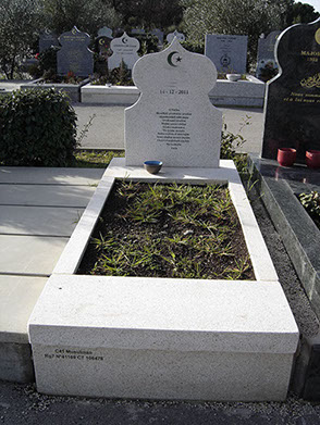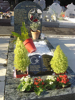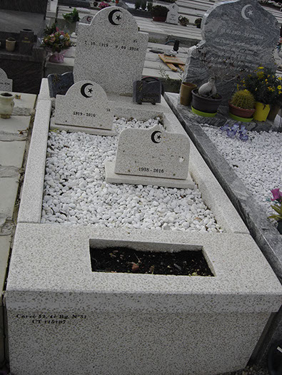 3- Mausolée (bâti) 1 stèle (croissant et étoile découpés) granit Vert Olive 105x258 cm