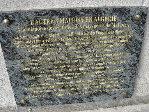 Plaque "L'autre 8 mai 1945 en Algérie"