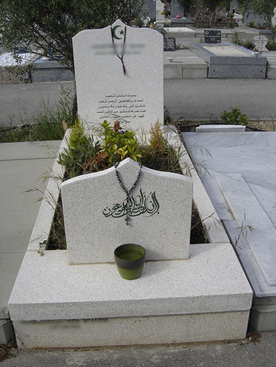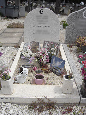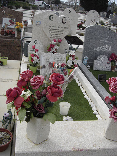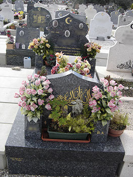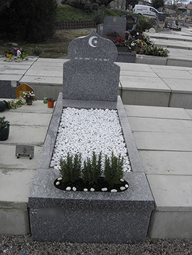 3- Mausolée (bâti) 1 stèle (croissant et étoile découpés) granit Vert Olive 105x258 cm